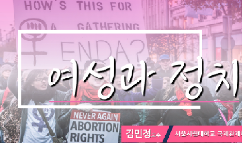 현대 사회에 여전히 많은 불평등이 존재하지만 그 가운데에서 최근 크게 주목을 받는 것이 성불평등입니다. 특히 정치영역은 다른 많은 사회적 영역의 국제 관계를 결정하는 중요한 영역인데 이 영역에서 성불평등은 사회 전반의 성불평등을 고칙화하고 확대할 가능성이 큽니다. 이런 점에서 특히 정치영역에서 왜 성불평등이 더 큰지, 왜 이제까지 정치는 남성의 것으로 생각되어 왔는지, 그리고 정치는 여성의 삶에 어떠한 영향을 미치는지 등에 대해서 살펴보면서 사회적 성평등을 이루는 첫걸음으로 여성과 정치의 관계에 대해서 알아보고자 합니다.
